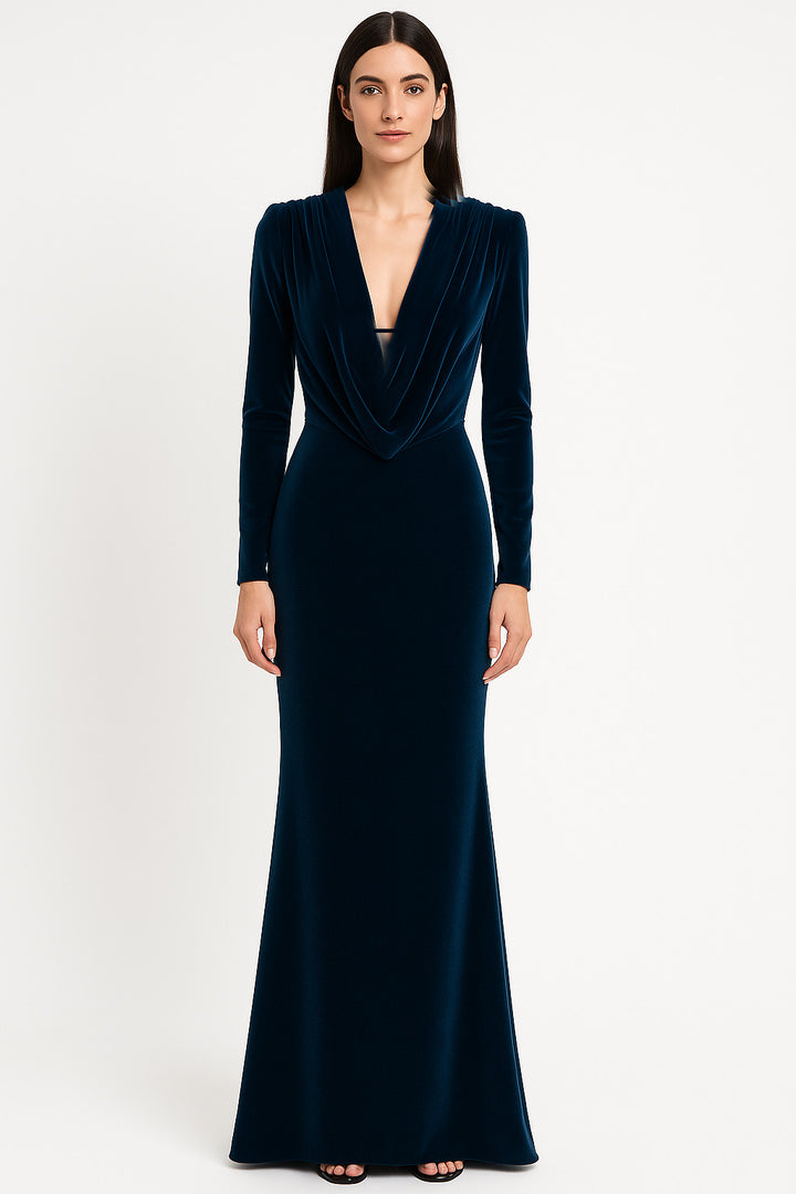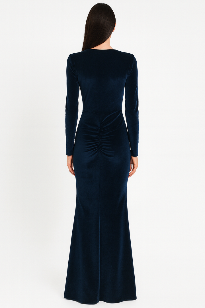 Abito in Velluto elastico. Scollo profondo e morbido sul davanti. Gonna che accarezza i fianchi e scende leggermente svasata. L'abito non presenta zip. Grazie all'elasticità del tessuto può essere indossato come una t-shirt e avere lo stesso comfort.