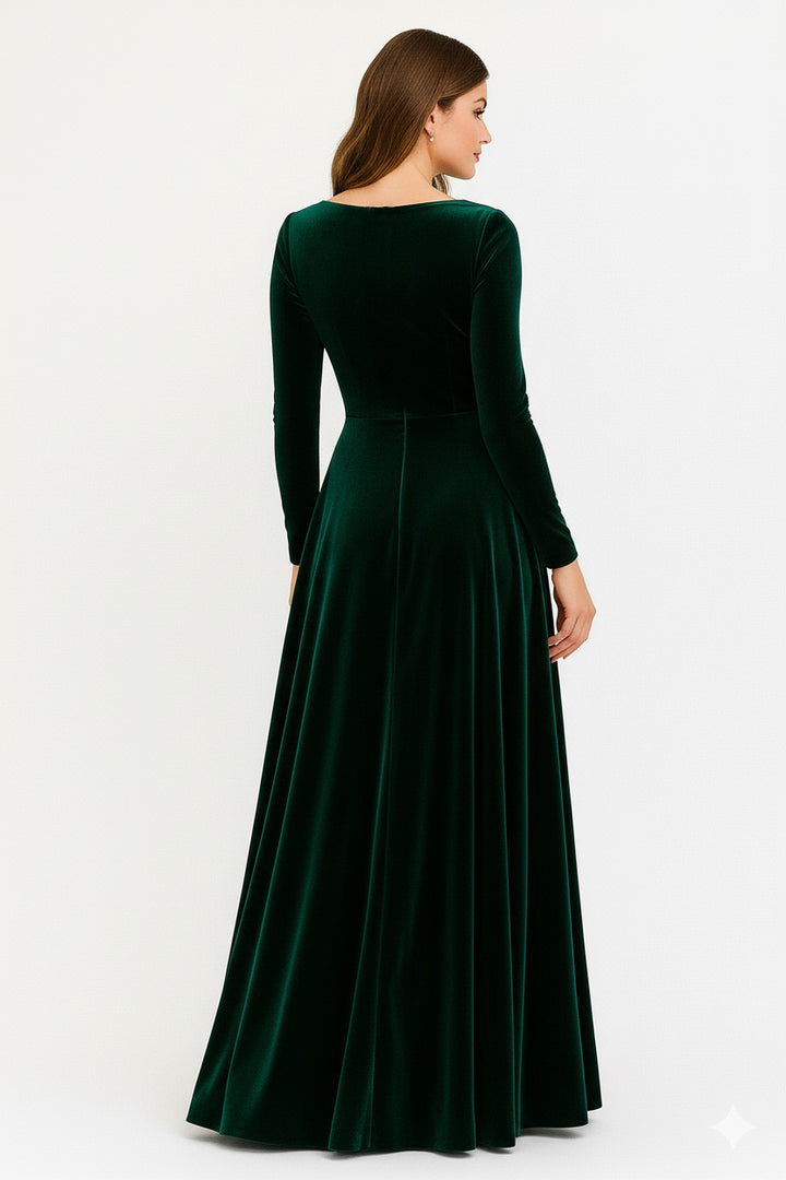 Abito in Velluto elastico. Scollo a cuore con manica aderente. Gonna morbida. L'abito non presenta zip. Grazie all'elasticità del tessuto può essere indossato come una t-shirt e avere lo stesso comfort.